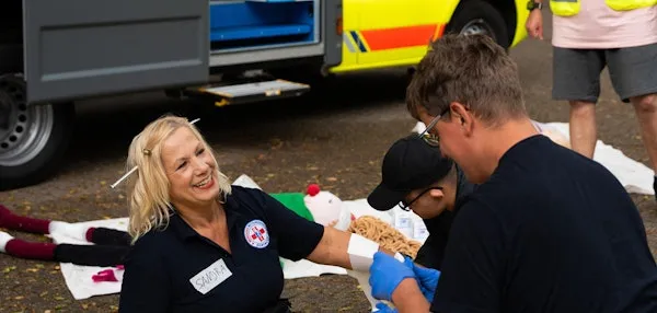 Realistische Fallübungen und Simulationen – z. B. Sturz von der Leiter oder starke Blutungen